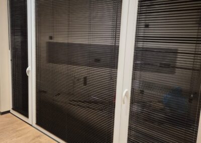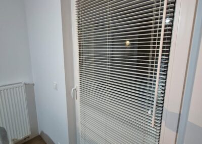 Najczęściej montujemy lamele 25 mm i 50 mm. 25 mm dobrze sprawdzają się na skrzydłach okiennych i w węższych wnękach – dają delikatniejszy rysunek. 50 mm to wybór do większych przeszkleń lub montażu do ściany/sufitu – zapewniają mocniejszy akcent dekoracyjny, mniej poziomych podziałów i stabilniejszą pracę na szerokości. Dobór zależy od miejsca montażu, stylu wnętrza i oczekiwanej intensywności zaciemnienia.