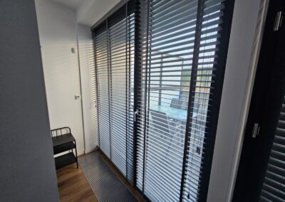 Żaluzje drewniane wybierane są do salonów, sypialni i gabinetów – ocieplają wnętrze i zapewniają precyzyjną kontrolę światła. W porównaniu z aluminium mają grubsze lamele i bardziej wyrazistą fakturę; są cięższe, dlatego wymagają właściwego doboru mocowań i czasem podziału na sekcje przy szerokich przeszkleniach. Do pomieszczeń o podwyższonej wilgotności zwykle rekomendujemy alternatywę (np. aluminium) lub drewno o podwyższonej odporności.